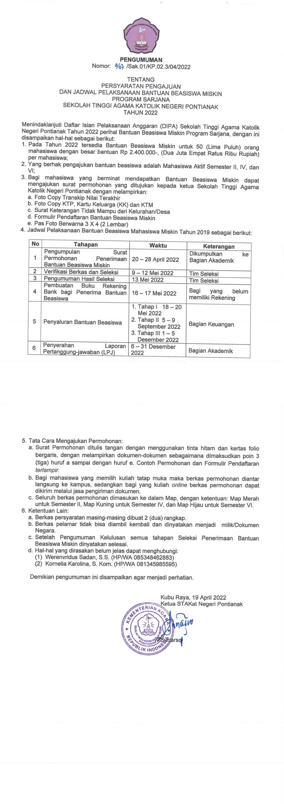 Pengumuman Persyaratan Pengajuan dan Jadwal Pelaksanaan Bantuan Beasiswa Miskin Tahun 2022 Byadmin April 20, 2022December 28, 2025