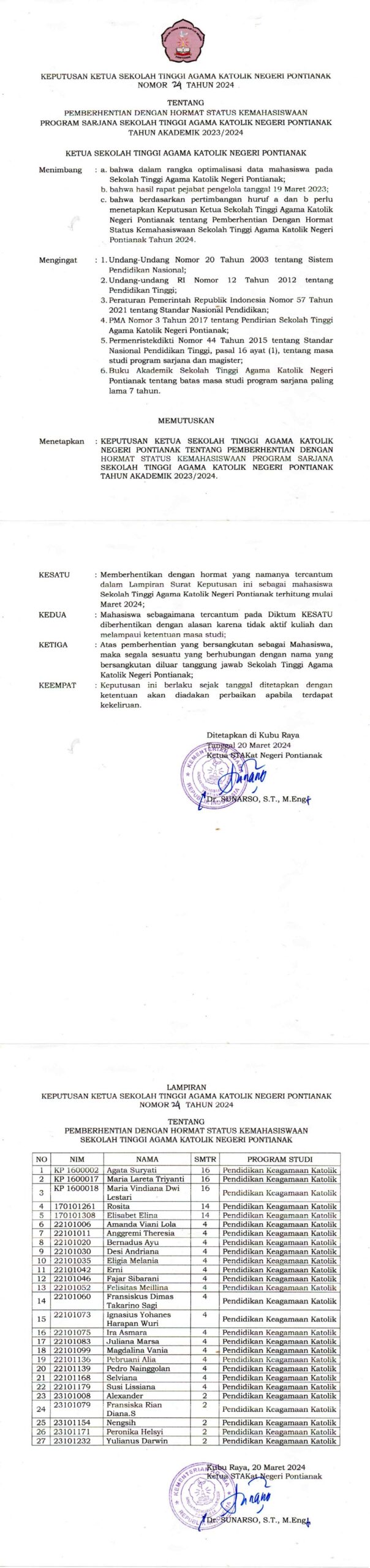 Pengumuman Maklumat Pelayanan Sekolah Tinggi Agama Katolik Negeri Pontianak Byadmin March 13, 2023December 28, 2025