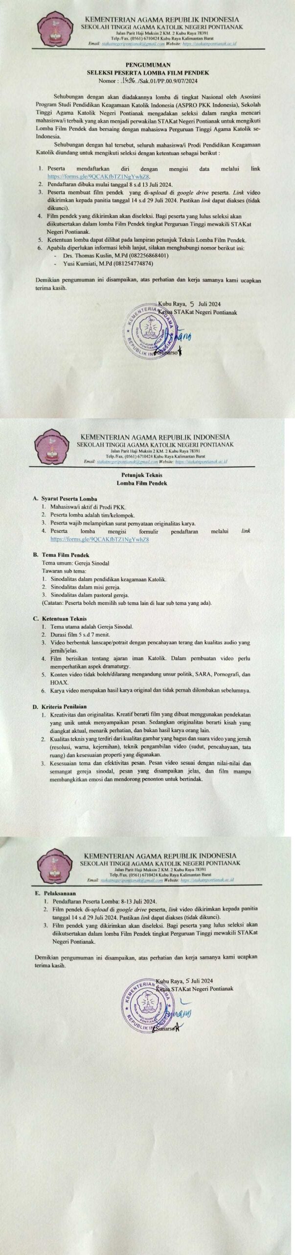 Pengumuman Surat Edaran Tentang Menjaga Kebersihan dan Keamanan Lingkungan Sekolah Tinggi Agama Katolik Negeri Pontianak Byadmin July 22, 2024December 28, 2025